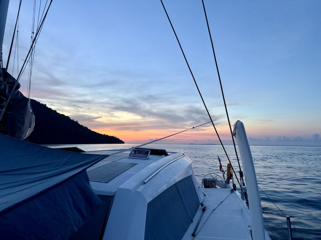 We had Chet and Jessy around for drinks in the evening, we wanted to pick their brains about our next destination that we leave for tomorrow, it is an island called Misool about 100 miles south. We are going to do it in two, day hops. Rowan has found us a speck of an island to stop at on the way down. Chet and Jessy had loads of info to give us about Misool they spent a month there, we have a couple of weeks. We need to be back at the main city Sorong by 23 November to pick up Clint, Rowan’s brother. We had a fun evening, Jessy is really into her wines, so Rowan managed to produce a couple of bottles to impress her. They had some great stories to tell us including how they met online in the Netherlands. Turns out Chet was born in Kenya, like me, he even had PolePole on his boat name list! His family left for the UK when he was 12. He moved to Amsterdam for work. This is his second sail around the world, he did it first in his thirties when he was single, but not the whole way, this time they plan to return to the Med where they set off from.
