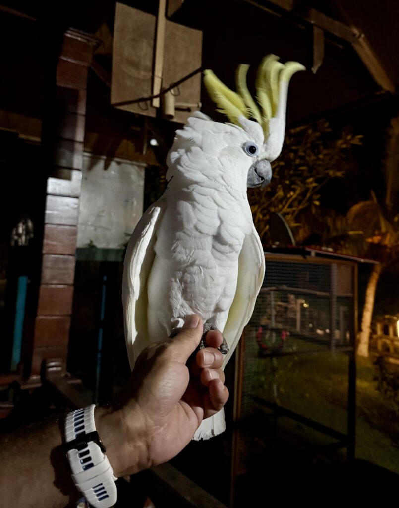 Julia and Ahmed’s cockatoo, who was very sweet and clearly adored Amed, actually it was mutual love!