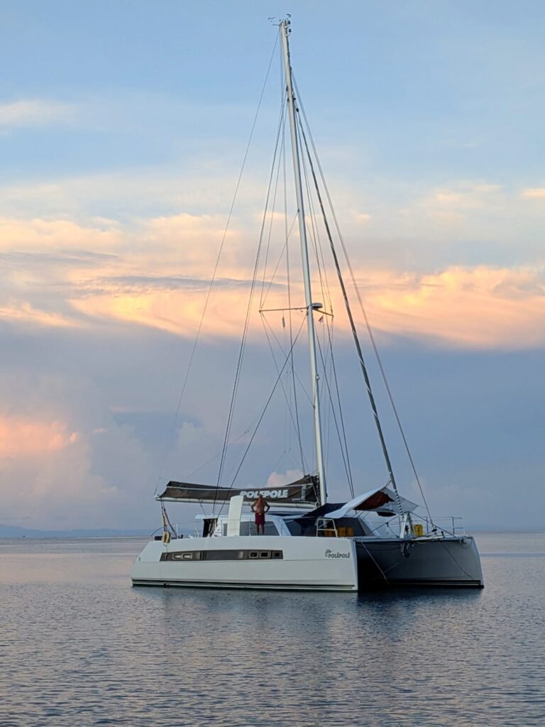 In the afternoon we had to go back into town to sign out with the harbour master, all good, just time consuming. We had planned to go on a bird watching tour at 5am tomorrow before departure. It really was not ideal as we have to leave by 8am, and would be cutting it fine, so Rowan offered it to the Croatian guy, who readily accepted it. We did a dash to the supermarket to get last minute provisions, to find they only had a dozen eggs, so pleased Claudette didn’t want any. We finally got back to PolePole just before 5pm which is when Rowan had invited Nick the Croatian guy and his Papuan partner for drinks. He works for the same bunch of schools for the mining company that Renee works for on the West Papua mainland. Renee works for the International school high up the mountain fairly close to the mine whereas Nick works for a local school owned by the mines down at the coast. Nick’s job is to raise the level of education at the school to benefit the local population. Very interesting. His daughter from an Indonesian wife he is no longer married to, won a mining scholarship to go to school in Europe to do the IB. He looked at Oakham but opted for a school in Rome. It seems to have been a mixed success, he says she is just continually hungry! Natalie his Papuan partner did not speak much English, so it was quite hard work while Rowan was showing Nick around the boat. Apparently Nick wants to sail around the world one day!