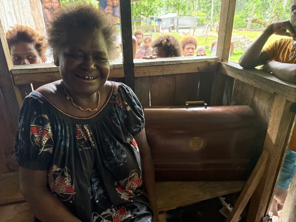 We went to the chief’s house, he is a large man, with loads of gravitas, and very well spoken, so much better than the following generations. His home was immaculate with a few interesting things on the walls. A big painting of Jesus, once again this island is all Catholic. Also a large list of all 14 of his kids, 8 from his first wife, and 6 from Philomena his current wife, who is very sweet. We were tickled to see her lovely old sewing machine having pride of place, apparently they both use it. He was very sweet with all the village kids who crowded around, he apologised for their curiosity, explaining that they do not see a lot of white people. We handed over loads of rice and tinned food, a kitchen knife and tongs. We gave Philomena a business class airline bag filled with additional soap, which she really liked. He got some old trousers and a cap belonging to Rowan which he was also very chuffed with. He welcomed us effusively, giving us permission to walk and snorkel wherever we wanted to, assuring us were totally safe.