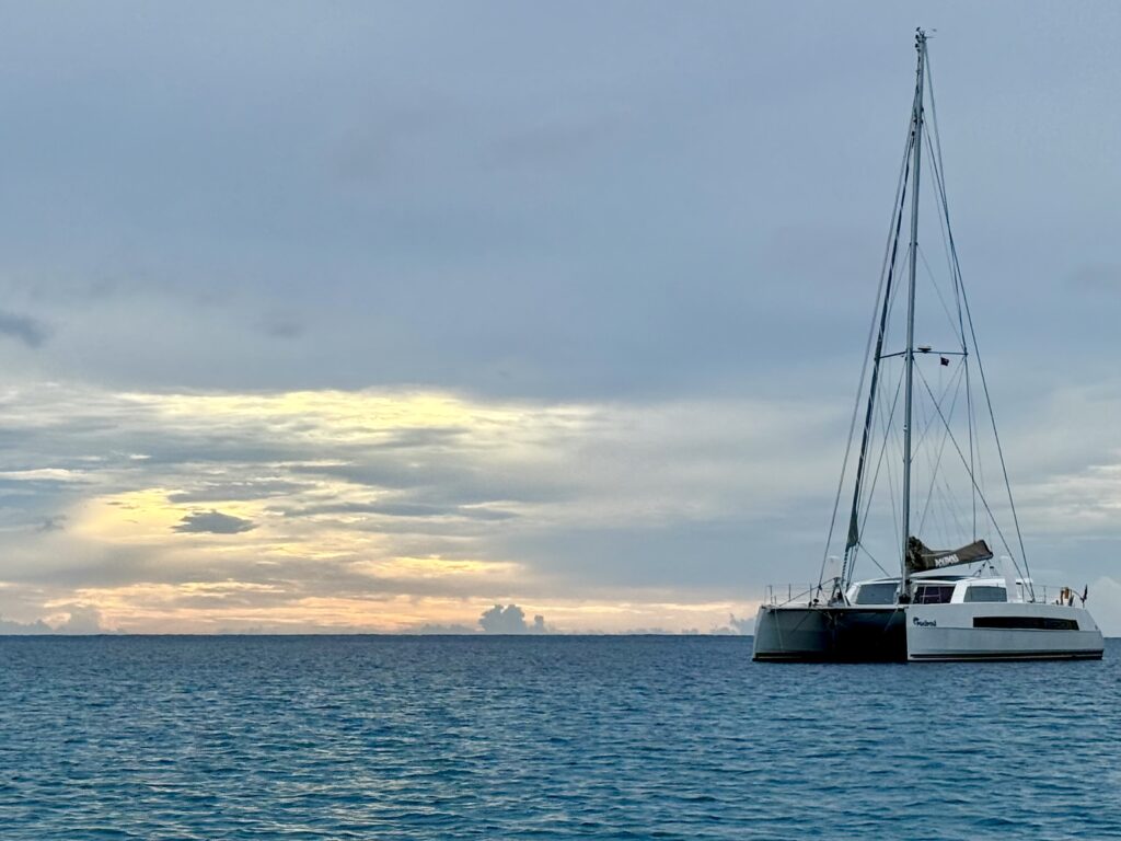 It was a lovely sunset back on board PolePole, with some dolphins spinning around.