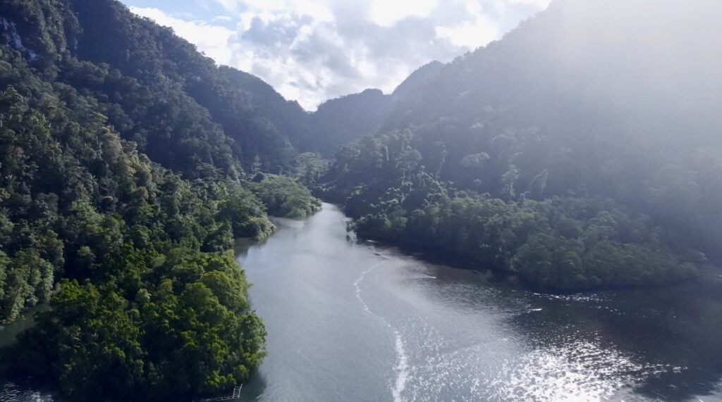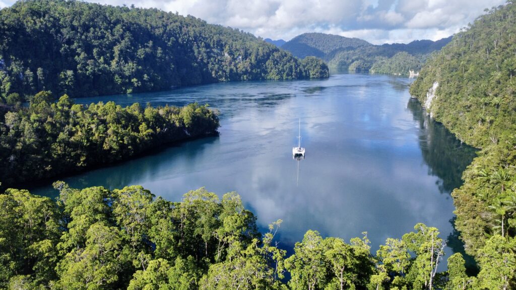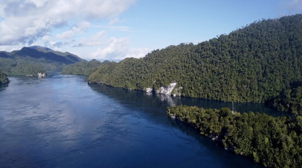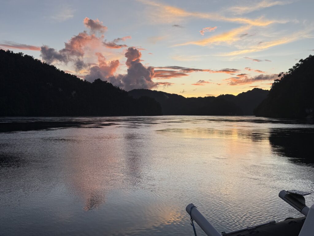 Back to boat to avoid a few rain showers. We love the anchorage, with the birdsong providing the best noises. Actually depressingly there was a chain saw going all afternoon in the distance. We’ve seen some areas devastated by logging on some of the satellite maps. The tide sweeping in and out is mesmerising, as it swirls around, plenty of big logs come and do a circuit in here, looking suspiciously like crocodiles, which we have been told are definitely around. It is extremely peaceful and relaxing.