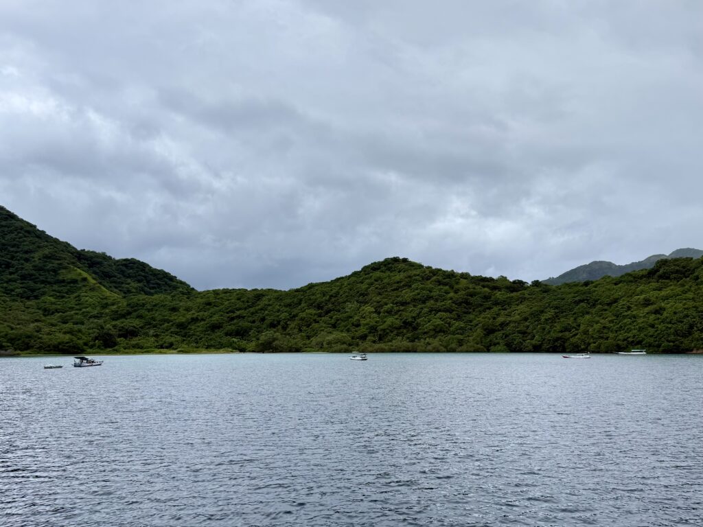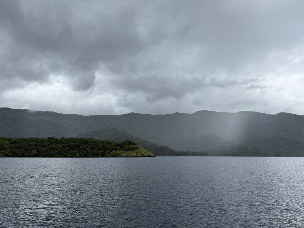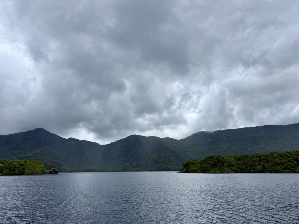 We headed back to PolePole and had a snack for lunch. Around 2pm we decided to go and snorkel another area, as we were getting ready I spotted an ominous black cloud, we decided to wait for it to pass. That was the start of the rain, it didn’t let up until midnight. It poured down swirling us around and around, but thankfully we were rock solid. The wind never felt like it got too bad, but certainly nasty conditions, it was a white out of clouds, we could not see the mountains on the other side nor our beach. We should have realised weather was brewing as four long boats arrived in our sheltered bay over lunch. It is amazing what they endure, they have a tiny cabin, which they all seemed to enclose with plastic. They were all there when we went to sleep, nobody was budging. I’m just so grateful we didn’t have this weather when Lovat and the kids were on board. It is the rainy stormy season so we should not be too surprised and actually we have been very lucky so far.