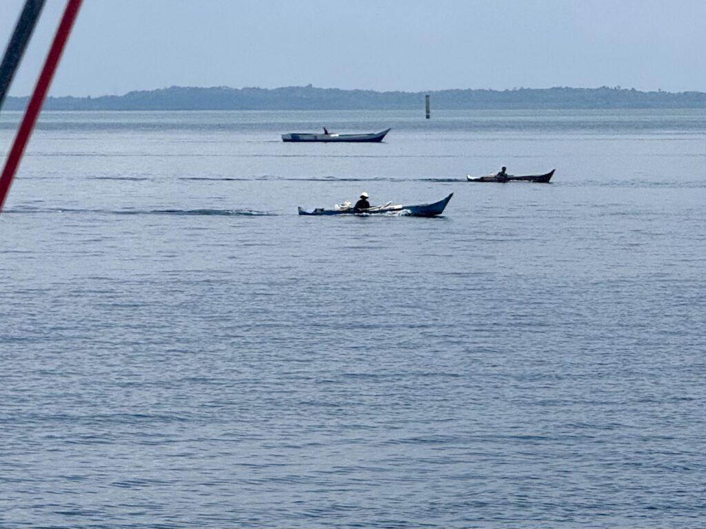 Dan on a long boat came to visit us and offered to do a few tours for us, one was to visit the Bajo village here where he lives and the other tour was to go snorkelling. We will do both after tomorrow as Rowan has made plans for my birthday! Rowan went for a great snorkel around 4pm, he said the coral and fish life was great, the water was a bit too full of rubbish for me. We watched endless locals fishing in their longboats, a group of 4 boats near us each had a long pole that they would smack the water with, they were obviously trying to herd the fish into nets. At one point they all jumped into the water, they were to far away to see what they hauled out.