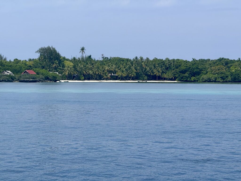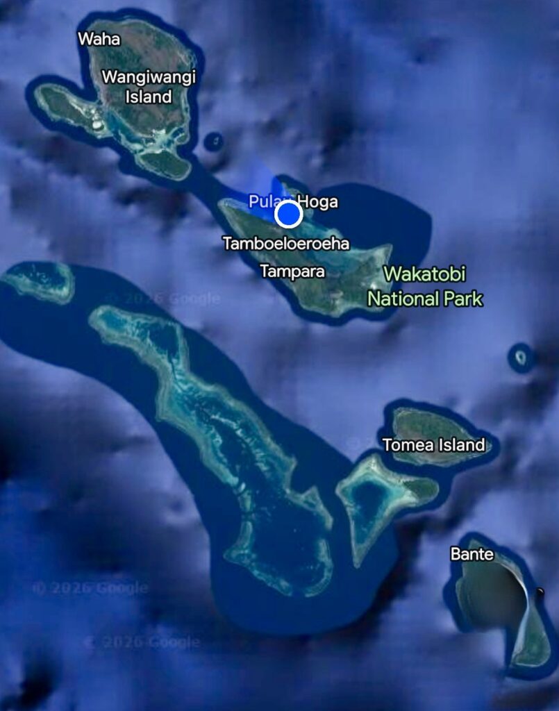 We got going before breakfast in nice calm weather. We easily dropped our lines, with no wind it was a motor across to Hoga Island about 30 miles away. A German boat had been anchored here up until a few days ago, they have moved on to an atoll, we have the place to ourselves. We arrived just after lunch and secured ourselves successfully in the stunningly clear water of the anchorage. The area is full of reefs, so we had to wiggle our way through, surprisingly there are some markers, but best not to rely on them. Our secondary screen at the navigation desk has stopped working, it sadly has the SD card reader with our card for the up to date navigation charts. So we are using very basic level charts until our new screen arrives with my nephew Lovat from Hong Kong in the middle of Feb. So Rowan is having to use his phone as an additional navigation tool, it is making his phone work so hard that to save power the screen keeps going dark, which is all a bit hair raising coming through these reefs. Thankfully we got in no problem and feel very secure here even though we are surrounded by reefs.