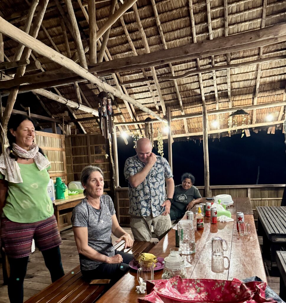 Dinner at the homestay, the German lady standing, Julie the kiwi and Stephen the South African, and Corizon the owner