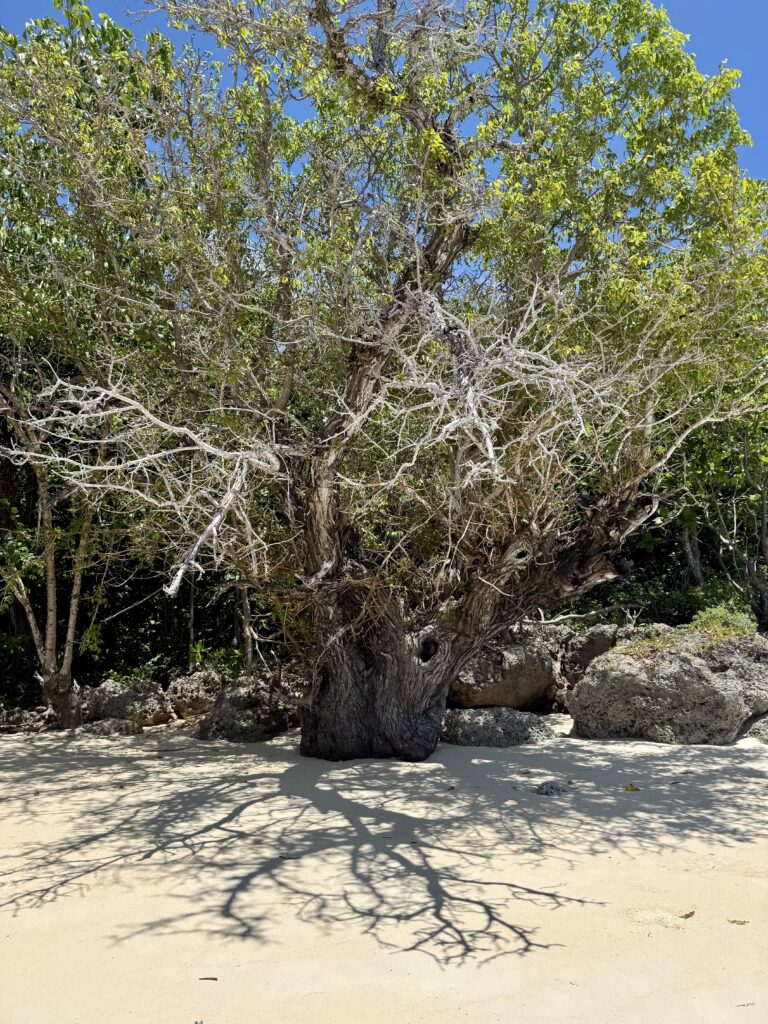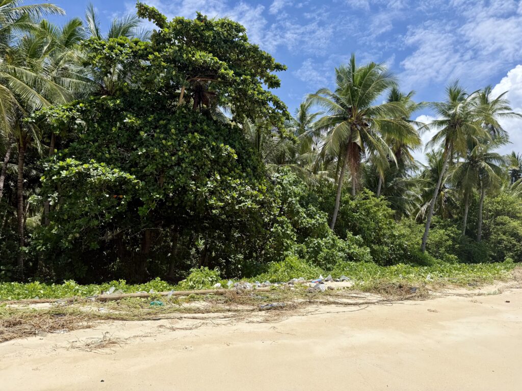 We wanted to go for a walk on the lovely beach, ideally we would have gone late afternoon when a bit cooler but with the weather building in the afternoon we decided to go midday which was baking hot. A stunning beach we had to wait for the tide to go up a little to get over the reef, but once on the beach it was white powder soft sand. The only sadness was the litter, luckily a creeper on the beach seems to be catching a lot of it and growing over it, at least it doesn’t go back into the sea once caught. There is an awful video on social media of the rubbish on the beaches of Bali in December, the sea is just a foaming solid plastic brown wave, looks too disgusting for words. The President then pleaded for school kids and adults to go litter picking to save their tourism industry. He is so right. We walked half the beach before needing a cooling swim and then headed back.