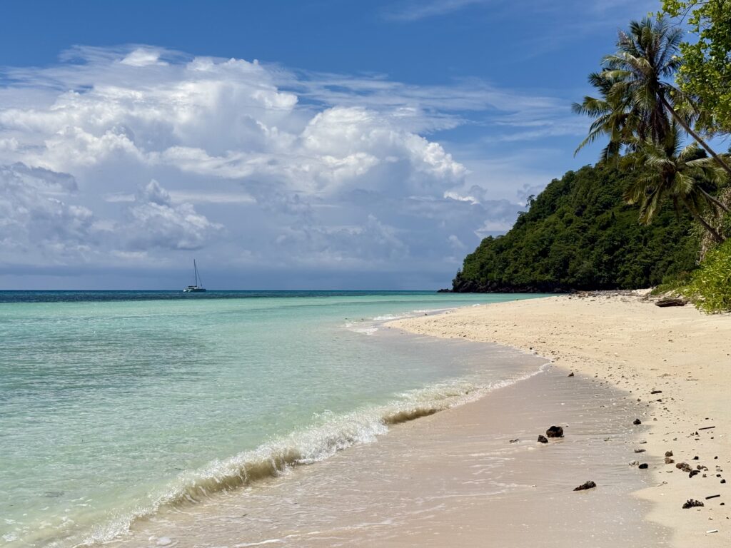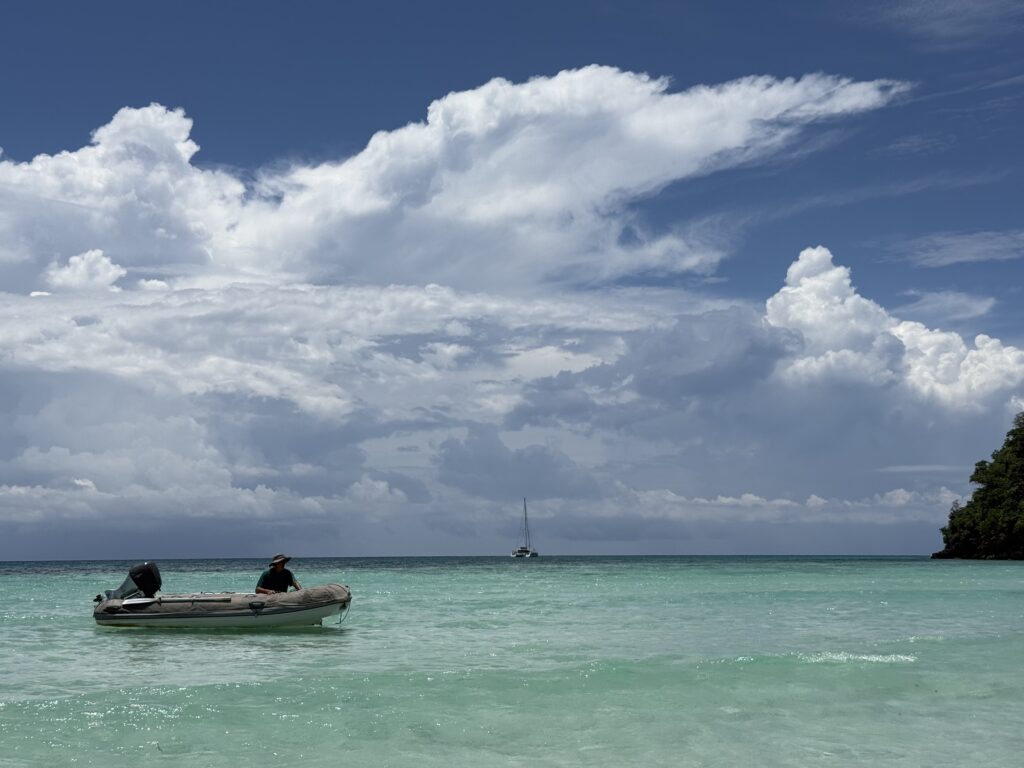 It was a nice feeling not jumping out of bed early to get the anchor up. It was a good day not to be doing anything as we could get a few chores done before the big head south tomorrow with wind in our sails hopefully. Rowan went for a snorkel in the morning, he came back very disappointed, judging from the constant tractor noise of longboats all day long the place is heavily fished, Rowan saw very few fish, coral was not great as there is a strong current and the visibility was not great, still churned from the storms I imagine.