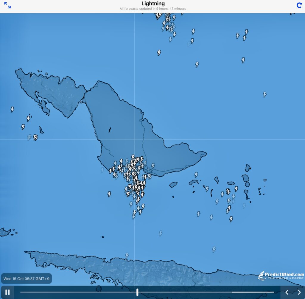 We woke up at 5am to lightning and thunder, coming from the island, about 2 miles away. Ugh we got up and disconnected all the aerials, switched of Stinky and put our devices into the oven, hoping for the best. Torrential rain followed, at least the boat got a good rinse off. Wow the bird watching tour would have been cancelled in these conditions anyway, so I don’t feel too bitter about missing it. The forecast is for wind in the right direction for two days and then it turns against us. The later in the year we leave it the more chance of having the winds against us.