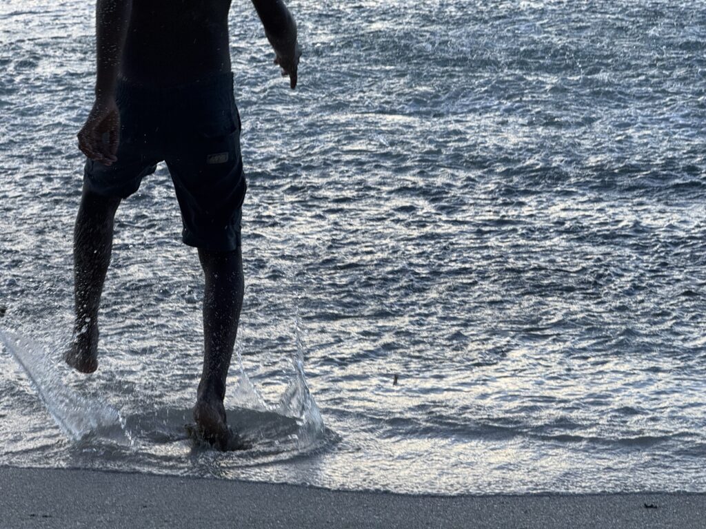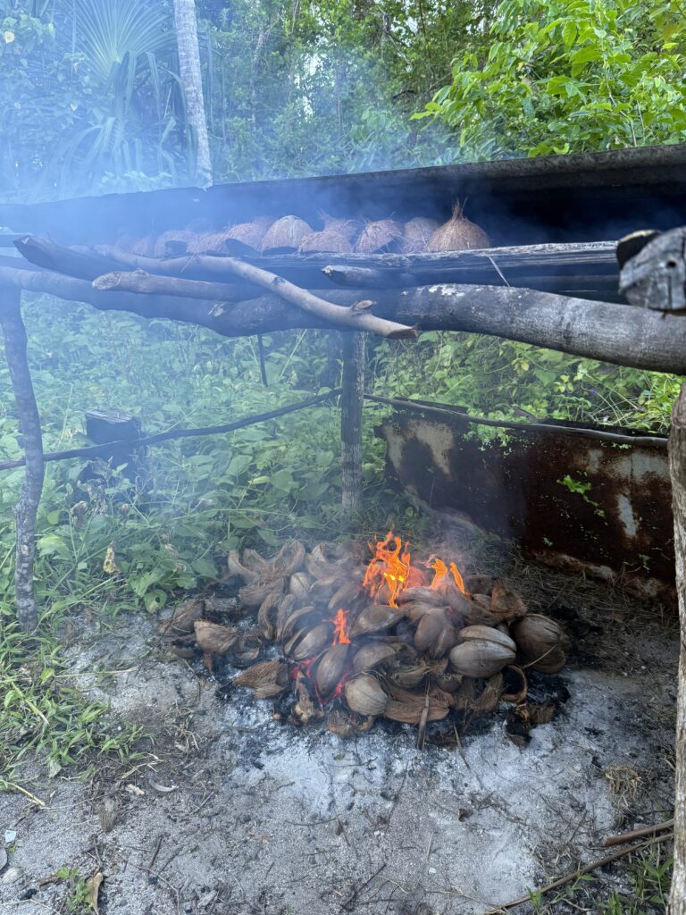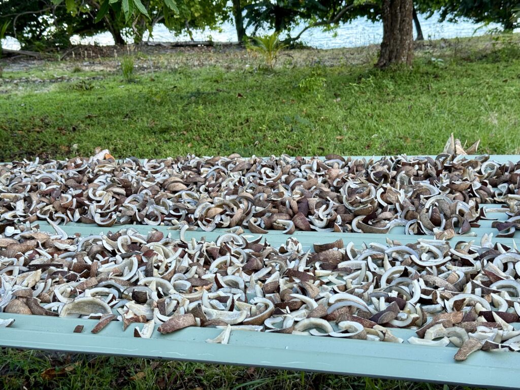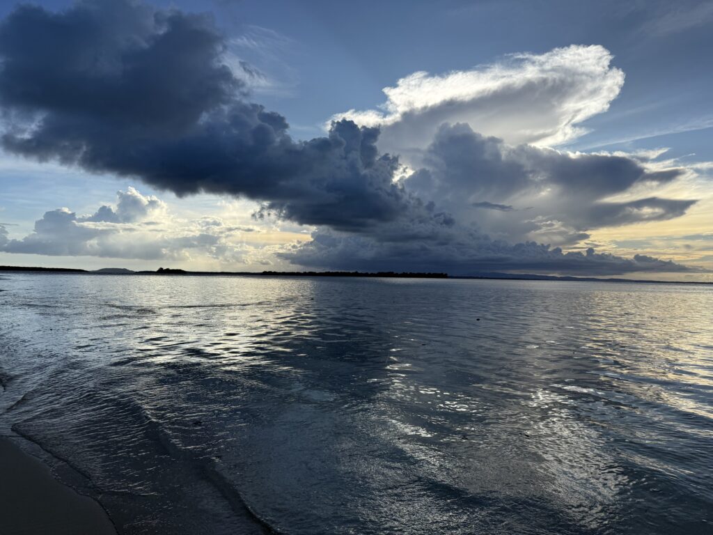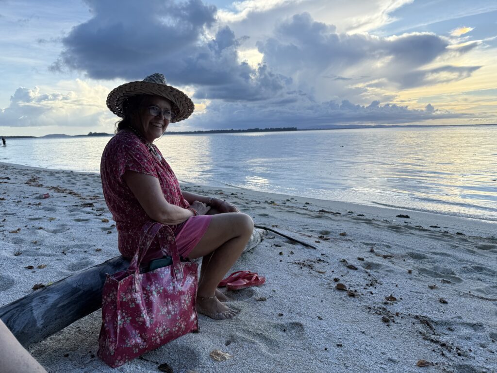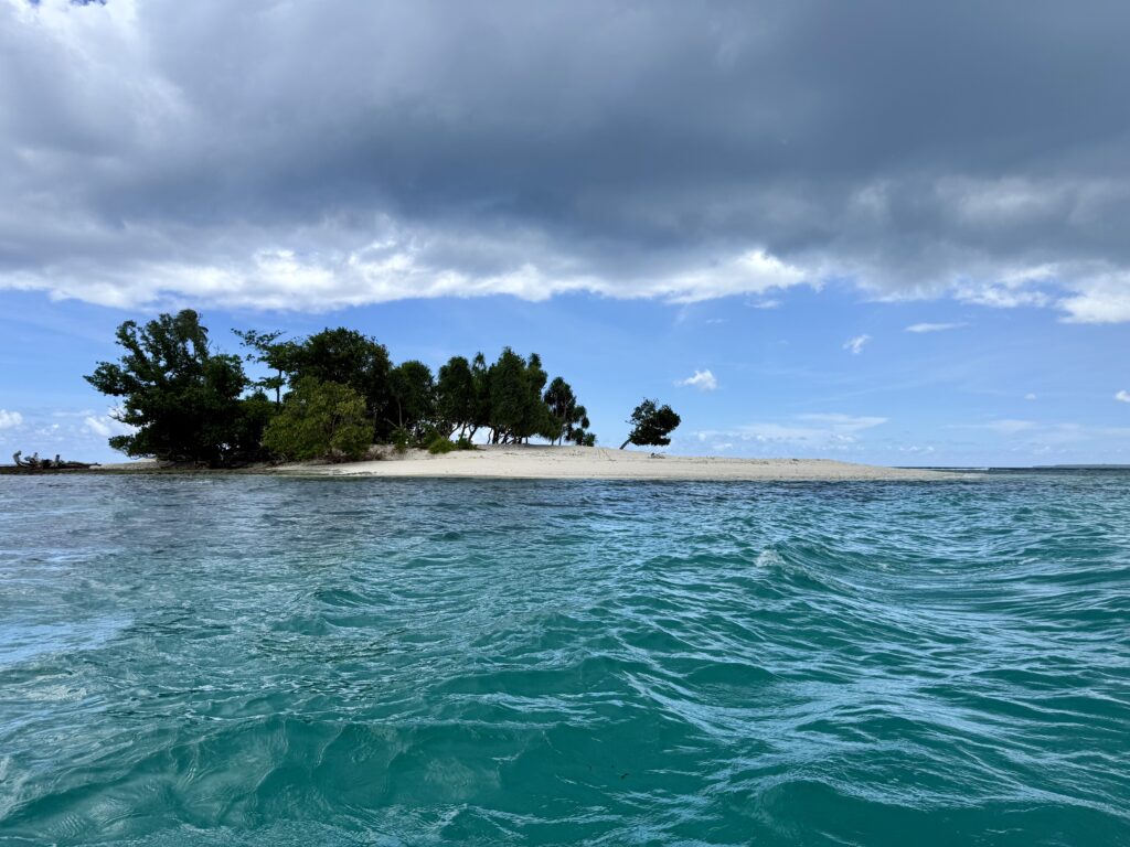 Late afternoon we went into the village to take some more goodies for the kids – books and pens. We had arranged a walk around the village to look at the Japanese bunkers on their land. Plus the remains of a gun. This end of the island was obviously a strategic look out post for the Japanese, some of the bunkers were in amongst the houses. The kids were very cute who guided us around. The chief/leader had told the kids to earn some money while they are on their two week Independence anniversary holiday. They all go to school in Kavieng and seem to be on holiday here with the grandparents we think. They took us for a walk to the other end of the island which had a lovely white beach and outlook. We gave them some money for the coconuts they had cut for us today and said we would take more tomorrow.