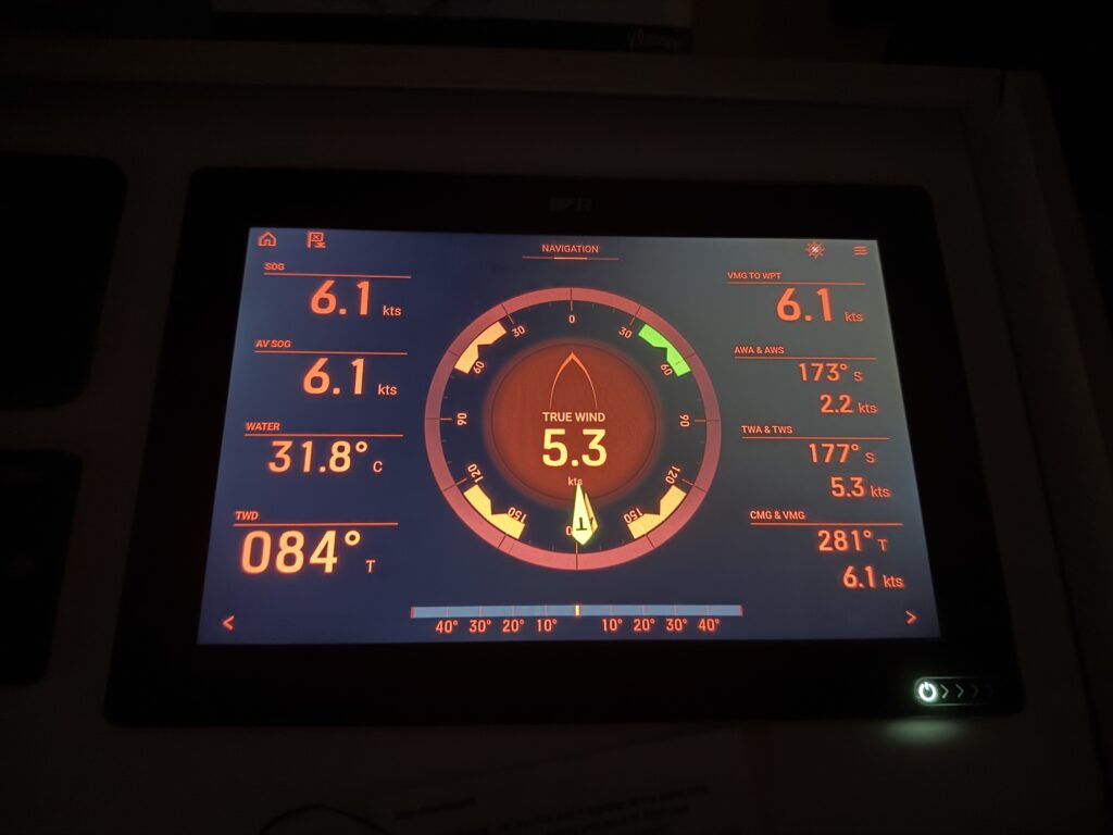 A scorcher of a day with winds frustratingly low, but just enough to move us along with Pinkz up. The great bonus has been the South Equatorial current, which thankfully is flowing in our direction and at just under 2 knots, so it has helped us enormously. It really is all the Pacific water hitting PNG and being forced west. What a help it has been to our speed. Crazily at times we were going faster than the wind speed! We are so close to the equator now although we will not cross it. We are now going west all the way to Indonesia. The water temp is regularly going over 32 degrees.