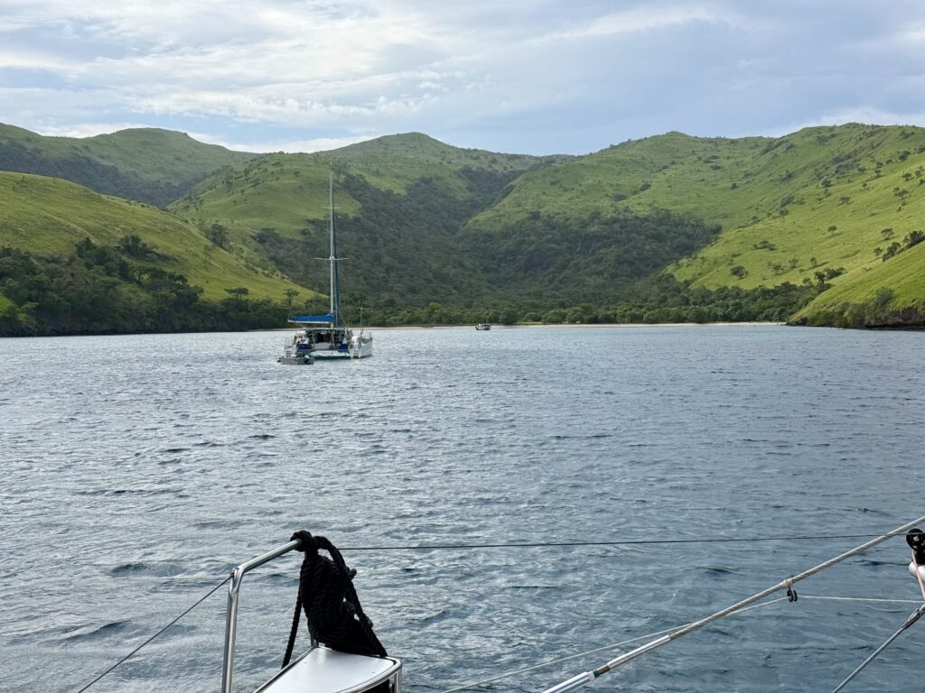 We planned to do a morning snorkel but woke up to the news that the tummy bug had struck poor Arthur. With the winds predicted to come in the afternoon, we decided to bring forward the water taxi which was picking up the Crickmores from our boat to take them to their resort they are booked into for two nights. Thursday they are predicting 40knot winds, all the diving phinisis are banned from going out, so we did not want to be going to LBJ on a day like that. Such bad luck for the Crickmores with weather timings, breakdowns and tummy bugs! We said our goodbyes and by 10:15am they were gone and we were off the mooring ball. We have decided to continue our progress west and to get into a very sheltered bay about 25 miles away. Easily doable in daylight.