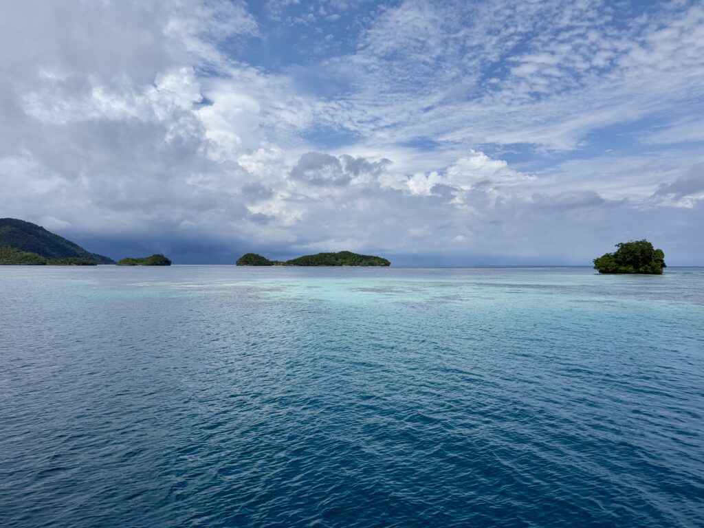 Leaving the anchorage in the morning, navigating our way through the reefs