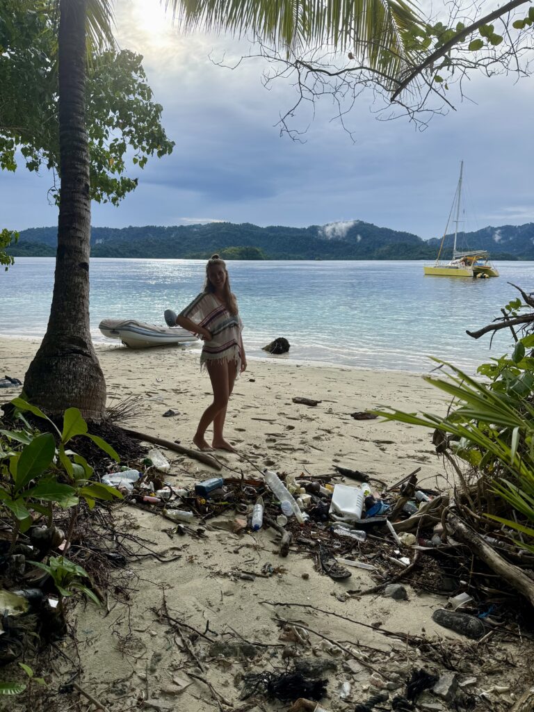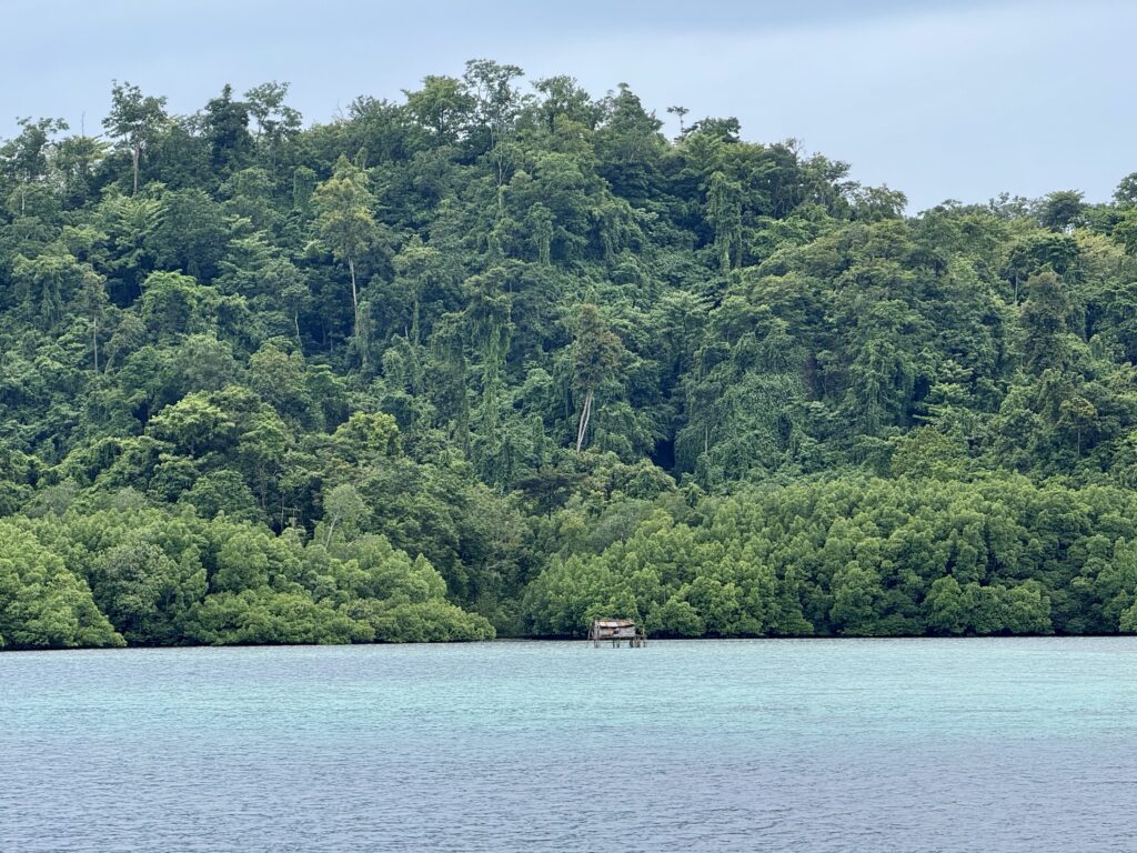 By late afternoon we arrive at our last anchorage before Sorong, tin sunshine. The bay seems to collect loads of rubbish, the current must carry it in