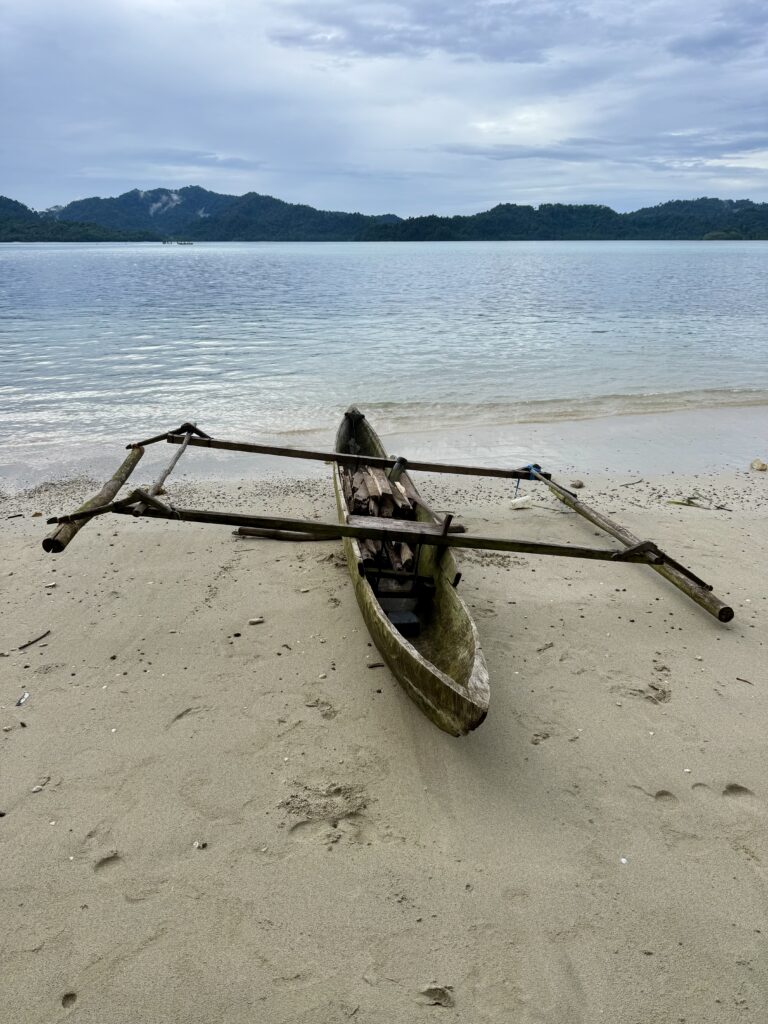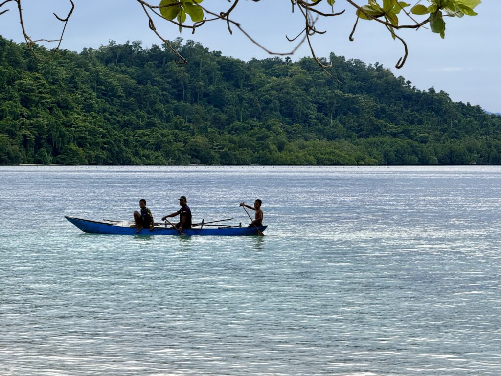 The locals out fishing in their outrigger canoe, we have not seen many of these in Indonesia