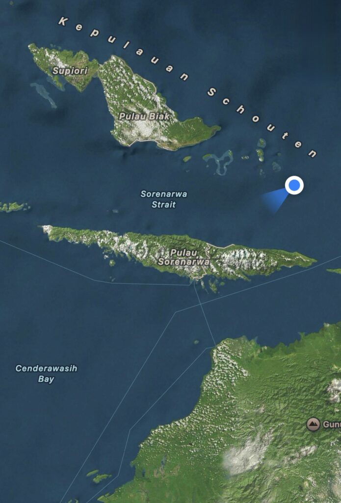 We were going so much quicker than expected that it looked like we would arrive at Biak in the dark around 2-3am tomorrow. We hoped the second reef would slow us down, but it didn’t seem to. Biak is an island off the main Papua Island that is joined to PNG. The harbour where we go to check in is behind a reef, it is a big town, so we are expecting a lot of fishing boats and local boat traffic. Much easier to do in day light.